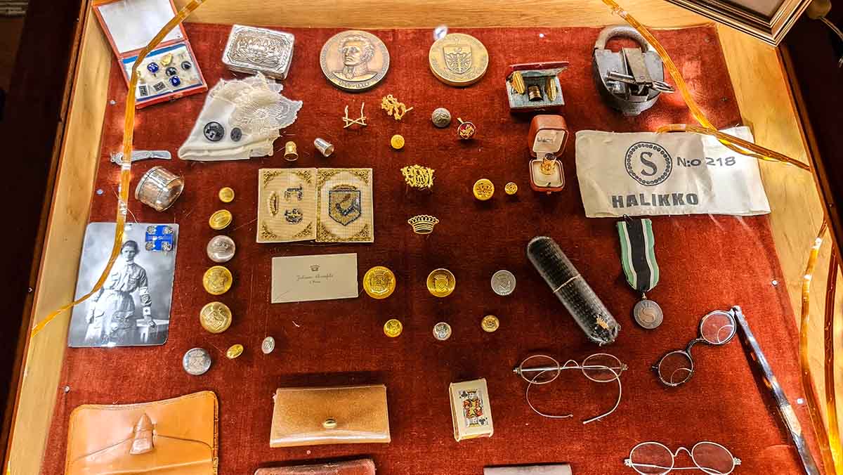 Lotta Svärd järjestö osti kannattamattoman lepokodin Tuiskun säätiöltä ja piti siellä lottaopistoa vuodesta 1937 lähtien aina järjestön lakkauttamiseen asti. Tätä ennen lotat ehtivät kuitenkin perustaa Suomen Naisten Huoltosäätiön, jolle lottien omaisuus siirrettiin. Lottamuseo oli kiinnostava käyntikohde. Jos olisi lukenut kaikki tekstit, olisi oppinut todella paljon. Ihan kaikkea en lukenut, mutta kuvat ja esineistön syynäsin aika tarkkaan. Museon yhteydessä on myös pieni myymälä ja lottakanttiini, jossa nautimme kahvit ja maukkaat korvapuustit.